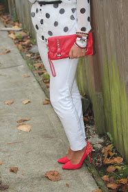 I love how vibrant this red is. I have a habit of picking the shoes I want to wear for the day and building my outfit around it. I was set on red. It's definitely a little out of my normal color combos but that's the fun part about fashion.